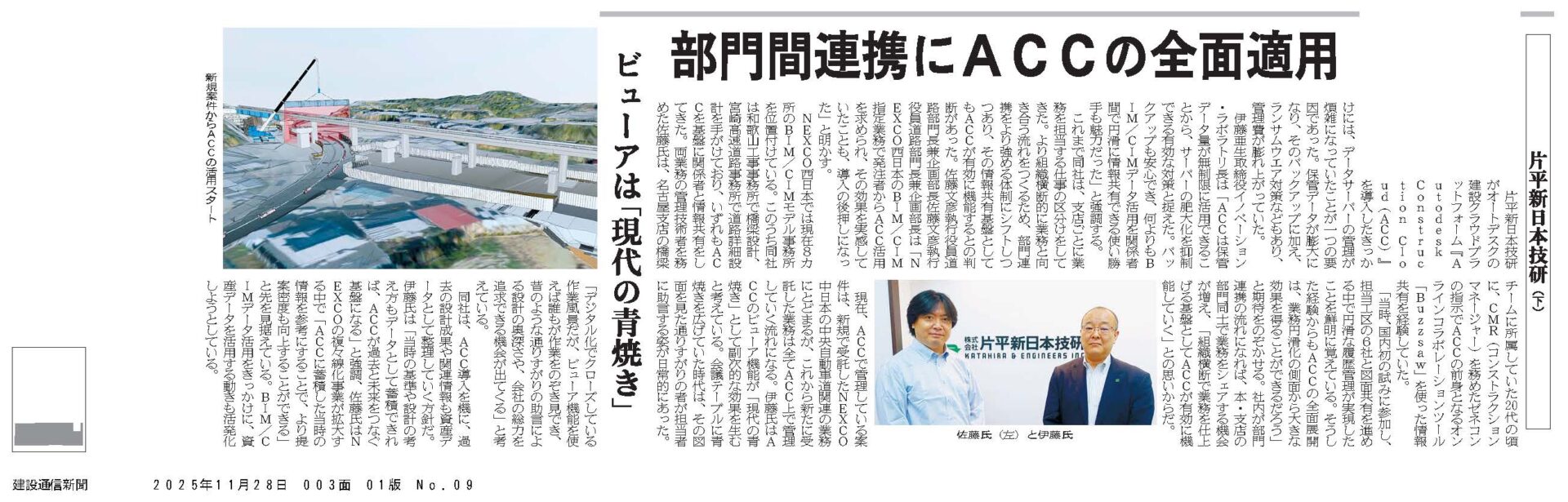 「Autodesk Construction Cloud(ACC)導入に至る背景」や「ACCの活用による部門間連携・業務円滑化への期待」などを記事に取り上げていただきました。
